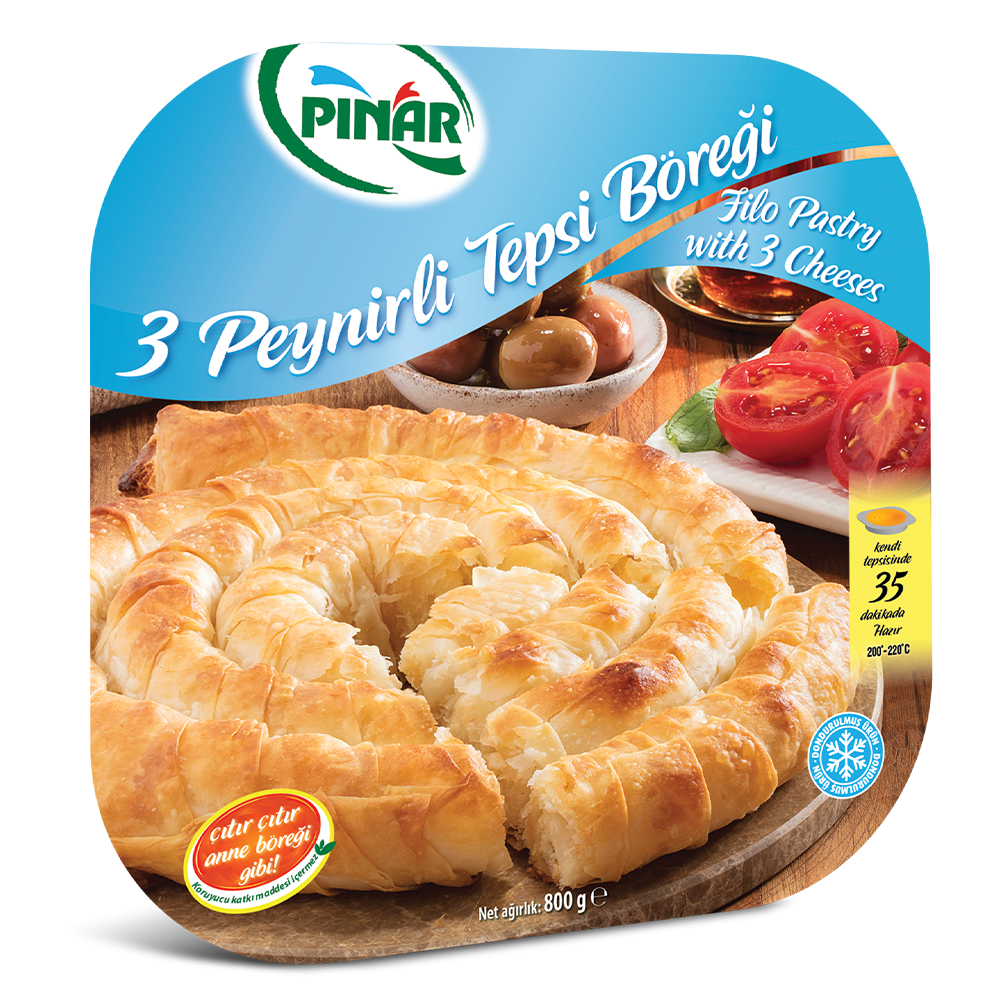 Wir präsentieren eine neue Variante für alle, die schon lange die Kombiantion von Börek mit 3 Käsesorten gesucht haben! Böreks der türkischen Küche sind besonder und sie gibt es nirgendwo anders in der Welt und nun mit der meisterhaften Verarbeitung durch Pınar noch besser! Den Börek mit 3 Käsesorten könnt ihr zum Früstück oder auch beim 5-Uhr-Tee genieβen.