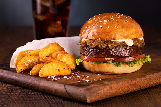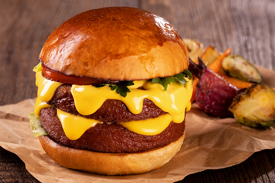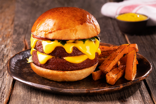 პირველი ვეგანური ბურგერი, შეიცავს 0 ტრანს ცხიმს და 1 ულუფაზე მოდის 21 გრამი ცილა.